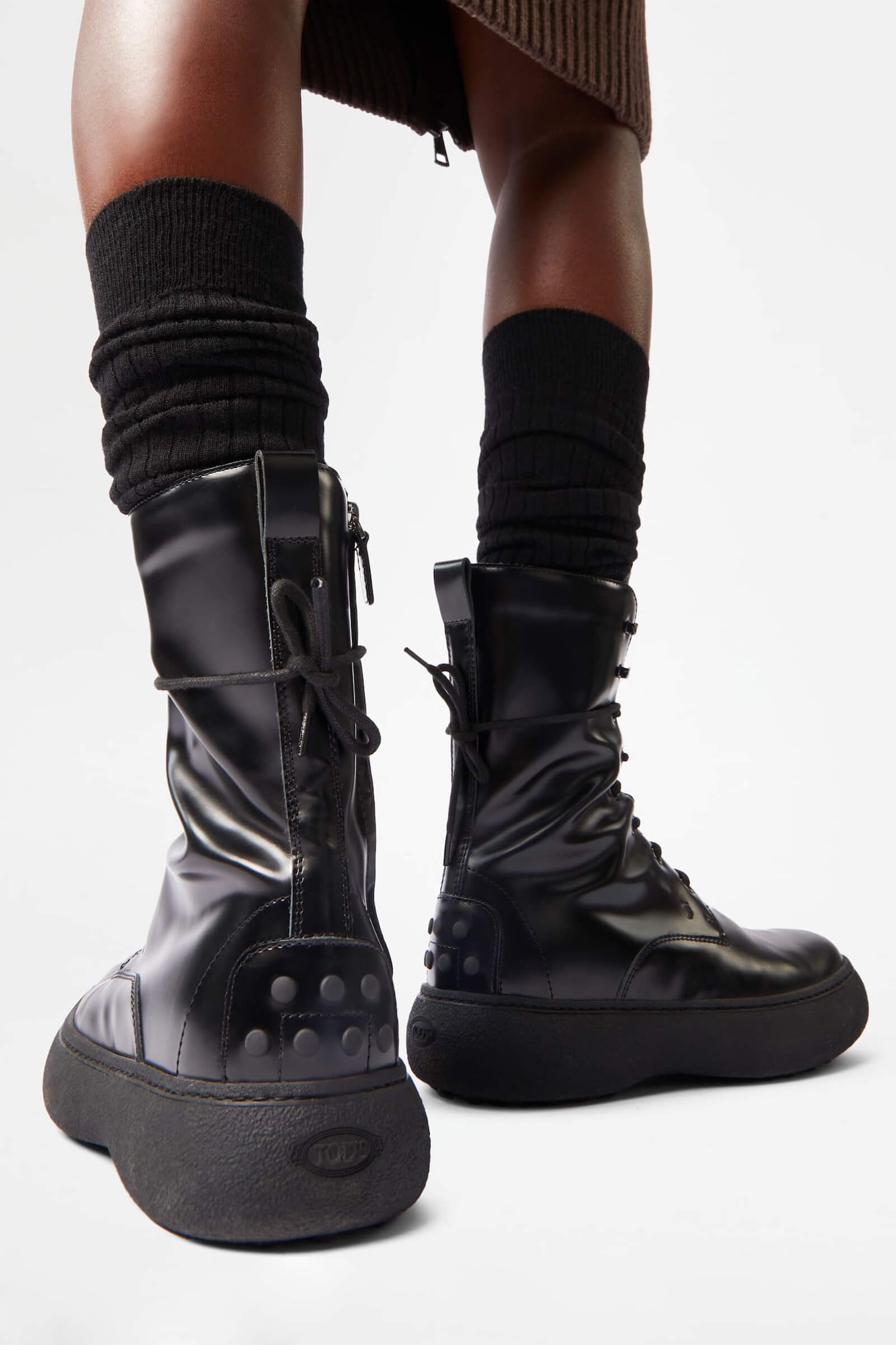 Partiamo da basso, nel senso rasoterra. C’è chi in assoluto predilige l’anfibio, da indossare con i pantaloni, scanzonati con una gonna o degli shorts. Perfetto in questo caso il modello stringato Cult. Se non amate le stringhe potete optare per modelli come quello nero di Tod’s con suola rigorosamente in gomma, come quelli di Paloma Barcelò che preferisce però il carrarmato.
